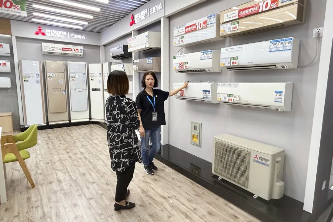 记者来到嘉定中信泰富万达广场看到,有市民冒着小雨来到苏宁易购店内,向工作人员咨询空调价格、功能等情况。“我家原来用的空调功能一般,现在梅雨季节,衣服穿着有点湿哒哒的,不太舒服,想换一台除湿功能好点的空调。”市民周女士说。