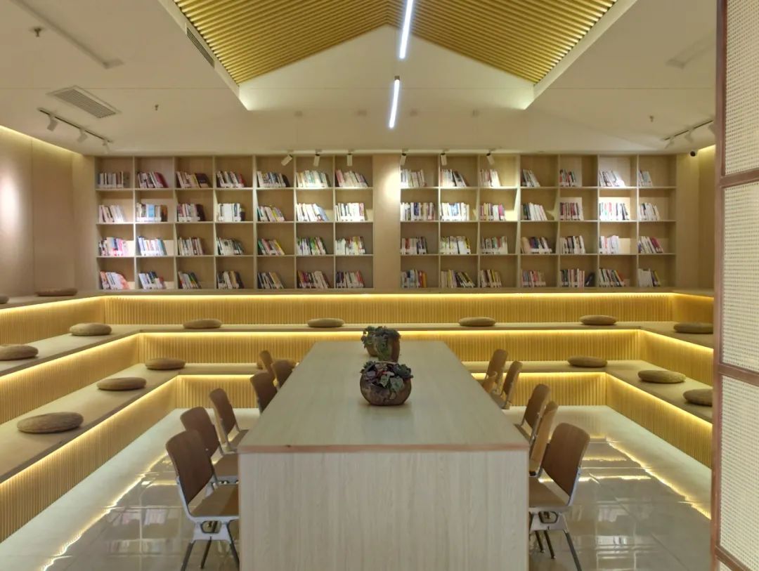 我嘉书房(马陆镇·嘉源海)位于马陆镇大裕村的嘉源海美术馆一楼,面积180平方米,阅览坐席50余个,藏书13000余册,是嘉定区首家建在美术馆的我嘉书房。馆内环境简约雅致,巨大书架、挑高空间、原木色桌椅,温馨的色调与极简的建筑为读者打造出惬意舒适的阅读空间。阅读区为公众甄选包括艺术、设计、人文、教育、生活、成长各领域优质书籍,并推出订制书单、艺术家书单,拓宽了公众阅读体验。