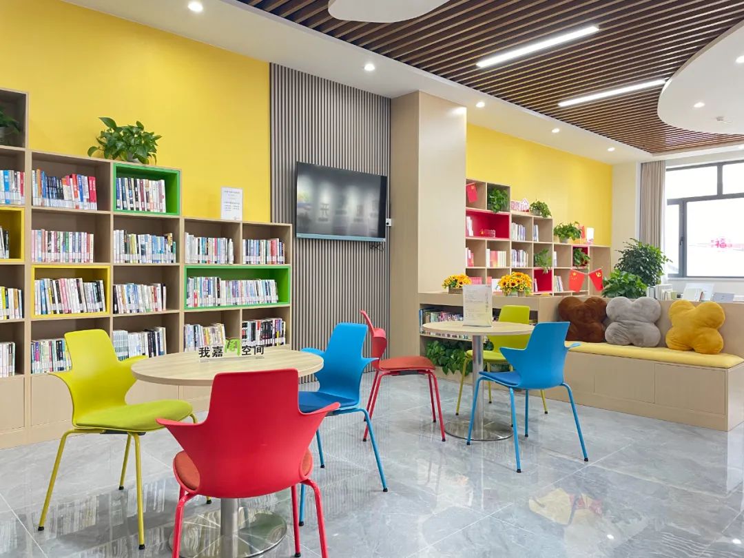 我嘉阅空间(工业区·莓丽乐园)坐落于灯塔村草莓主题乐园“莓丽乐园”内,于今年1月启用,面积100平方米,藏书1000余册,以开展初级教育研学、非遗教学、草莓文化体验课堂等文化体验活动为主,是嘉定区农家书屋与“农电文旅”融合的首次尝试。