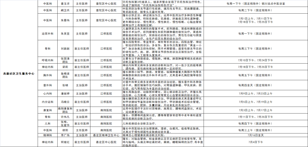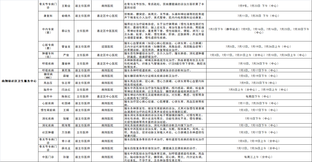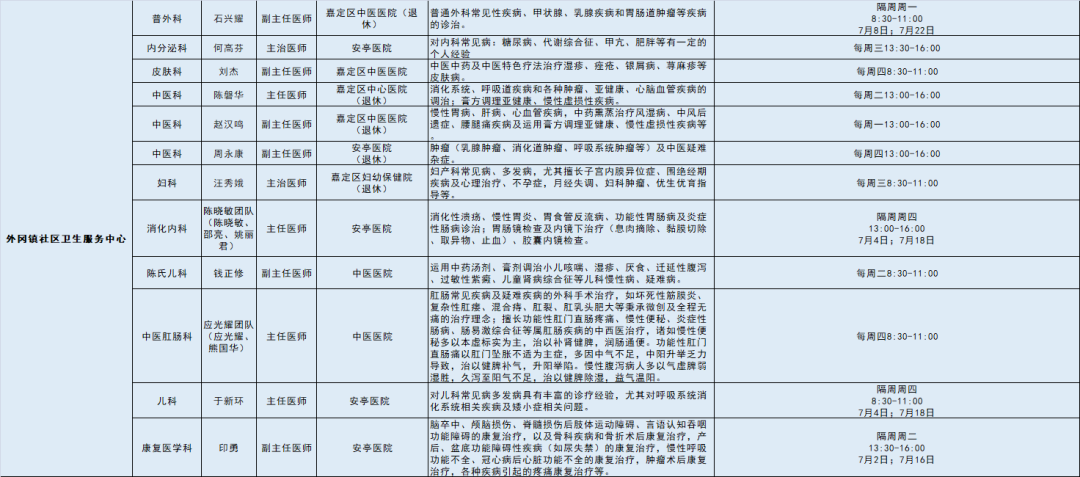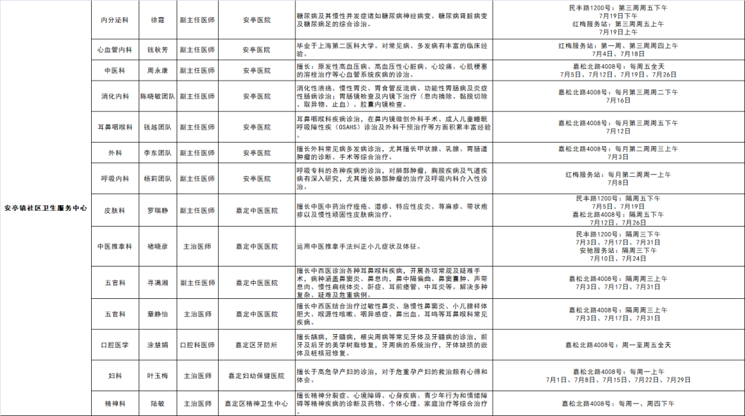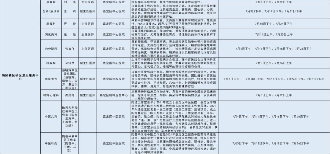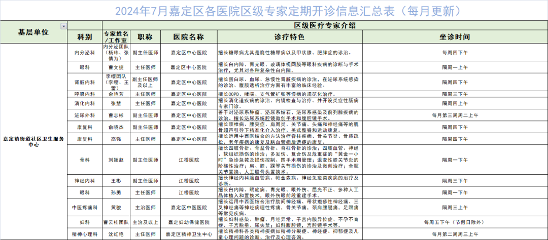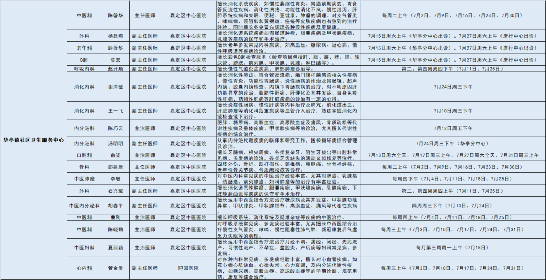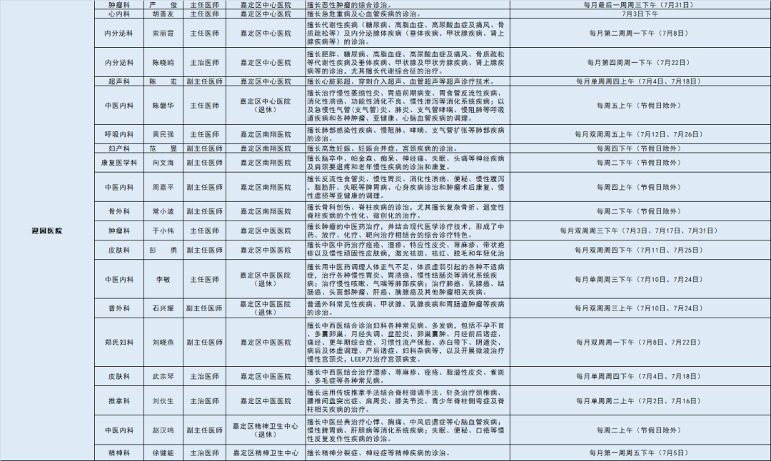 嘉定区各医院区级专家7月定期开诊信息出炉