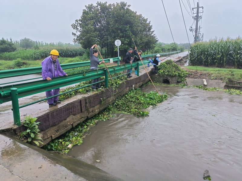 6月28日清晨,洪治村巡查队巡查到黄湖支渠洪治村三组区域李庆久屋前时,发现沟渠中杂草严重堵塞桥洞,雨一直下,杂草越积越多,桥洞随时有被堵死危险,桥面上流水也越来越深,已严重威胁到出行群众和车辆过桥安全。村委会干部、湾落联户长闻讯迅速赶到现场开展杂草打捞,附近村民也自发冒雨参与杂草清理。通过将近一个多小时的连续工作,杂草被完全清理,桥洞被疏通,沟渠水正常顺流而下,桥面水位也迅速下降,行人车辆顺利通行。