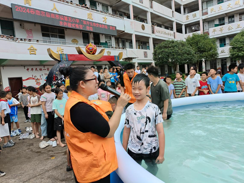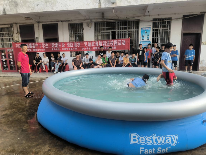活动采取在校园设置小型活动泳池开设防溺水课的形式开展。课程的主要内容是:观看防溺水警示教育片、了解水的特性、感受水的浮力、体验水中不能呼吸的感觉等,通过模拟逼真的溺水场景,让学生真实感受危险水域的特征及水的特性,真正做到学会避险,珍爱生命,远离危险水域。