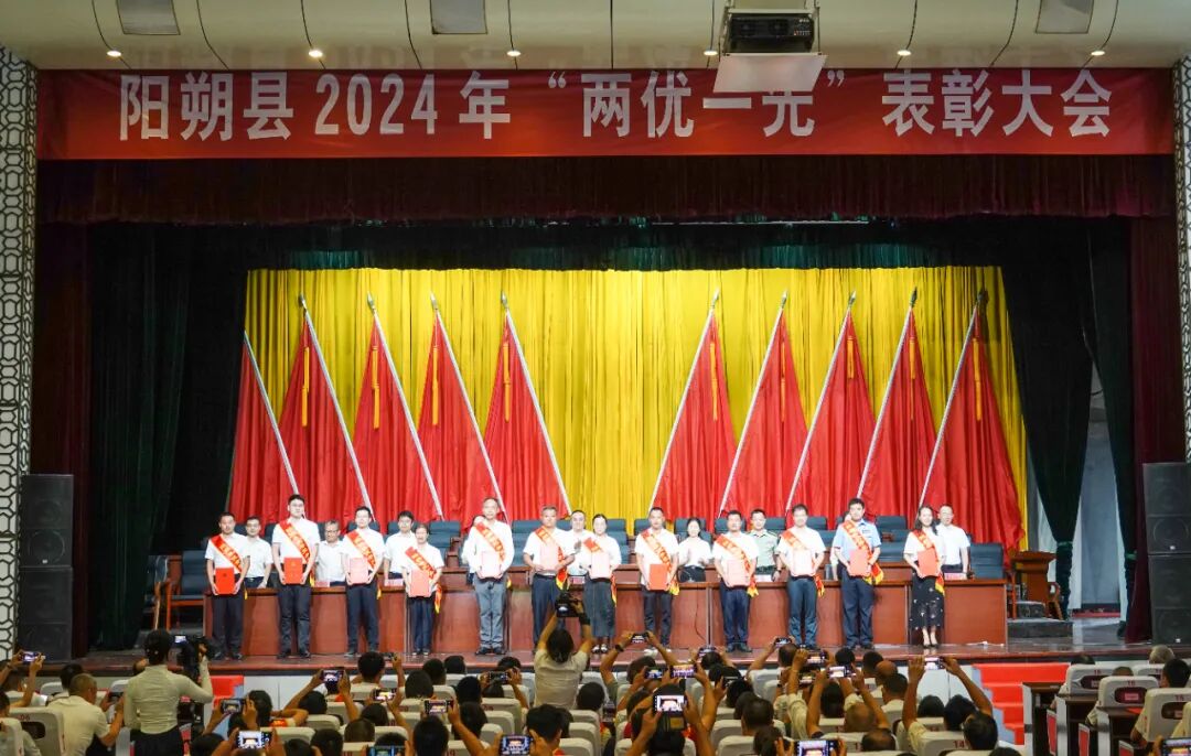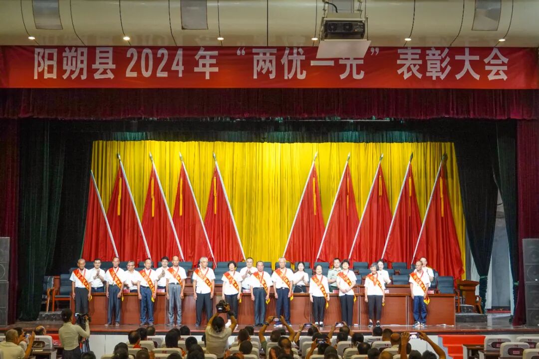 6月28日上午,阳朔县在县人民大会堂召开2024年“两优一先”表彰大会,为老党员代表颁发“光荣在党50年”纪念章,对在全县各条战线、各行各业涌现出的优秀共产党员、优秀党务工作者和先进基层党组织进行表彰。