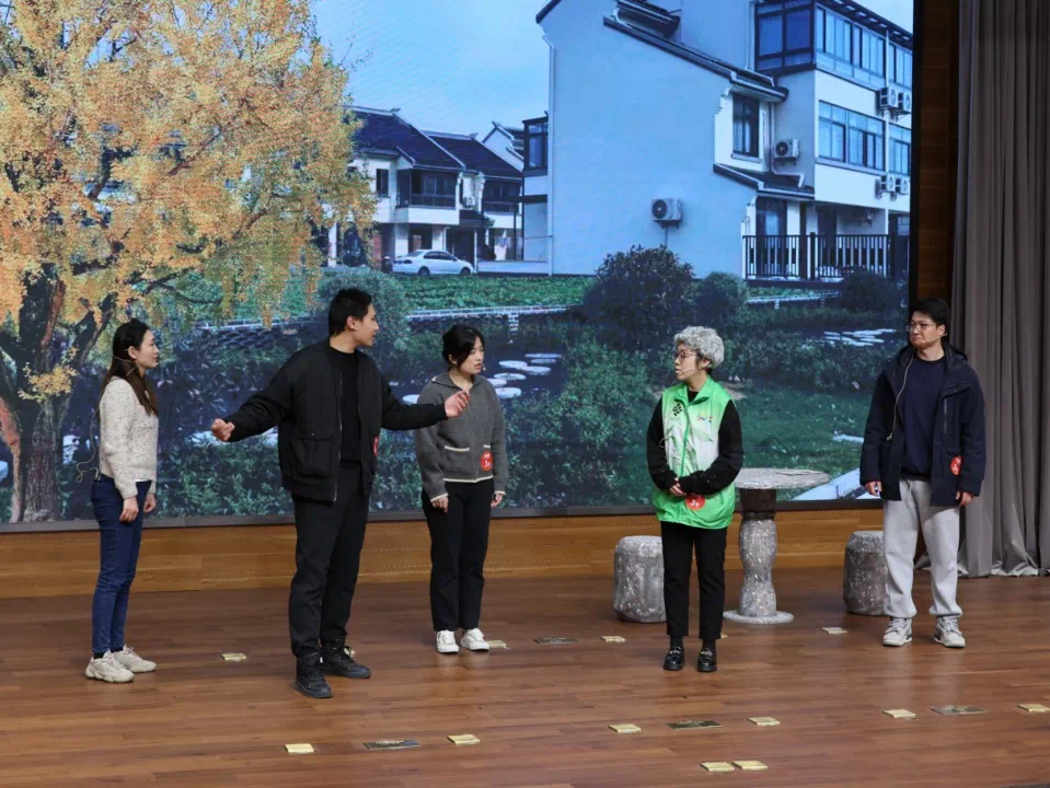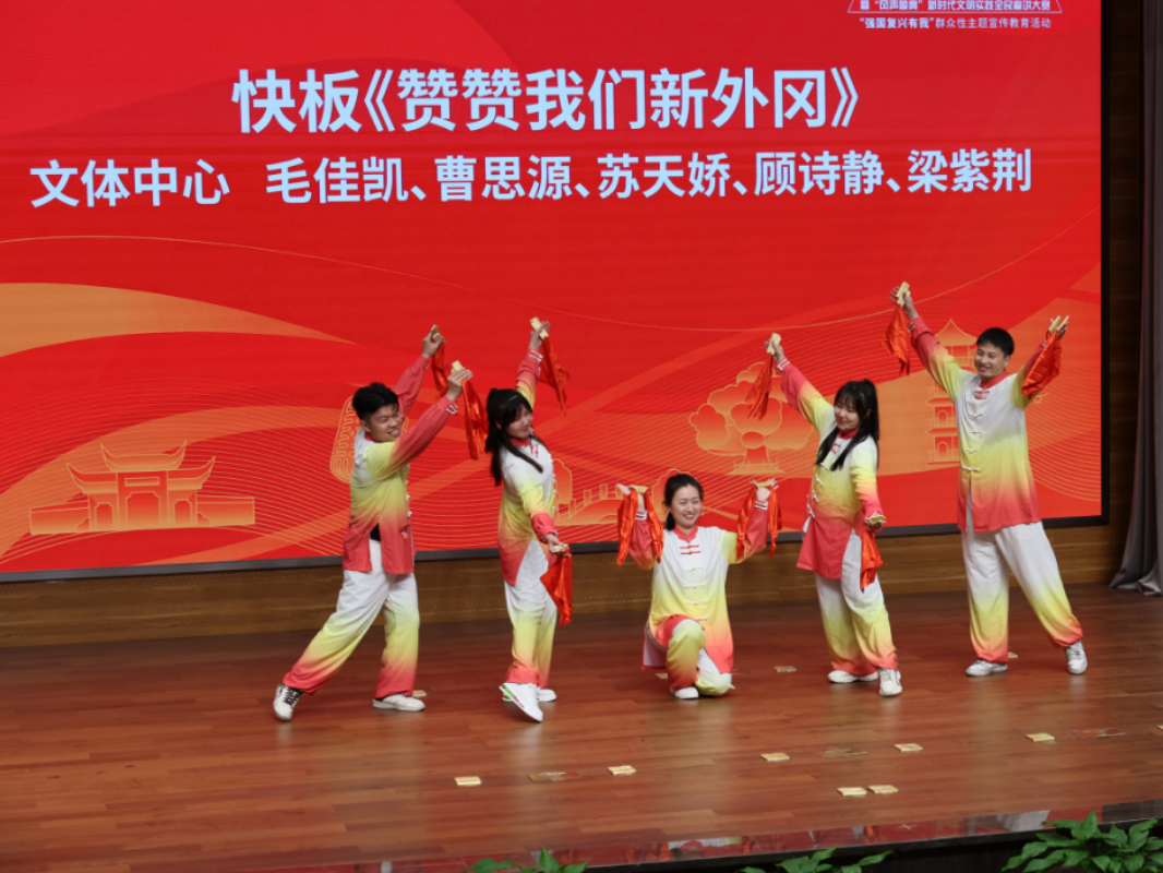 以生动化实现“精准滴灌”是多元尝试。小品《活成一棵树》《建房帮帮团》放眼民生小事,以“普通话+本地话”双语版本阐述“人民城市”理念;情景剧《烽火》将芭蕾舞、沙画等多种艺术表现形式与主讲人讲授相结合,讲述“火烧敌机”等外冈游击队英勇斗争的故事;弹词开篇《少年中国梦》字字铿锵有力,彰显了外冈少年的愿景和希望;快板《赞赞我们新外冈》、诗朗诵《冈声嘹亮》、歌曲《你的名字叫外冈》等文艺节目生动讲述了外冈由“农业重镇”崛起成为“绿动之城”的发展脉络……