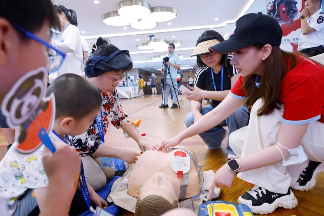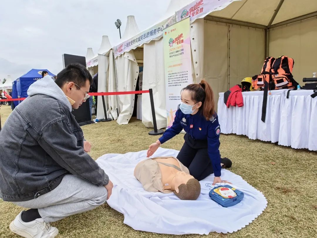 夏姚瑶(右一)为市民开展急救培训