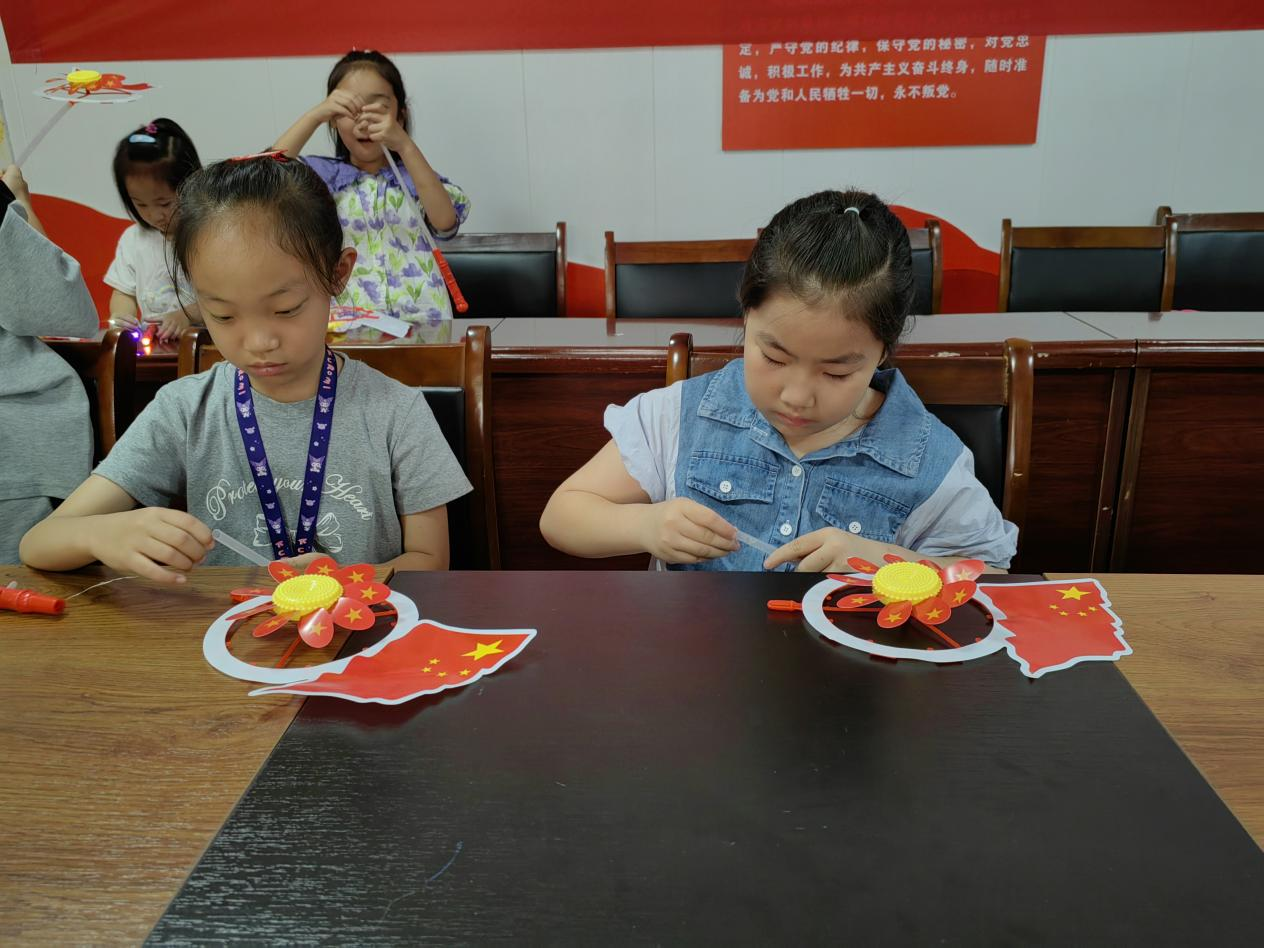 为让孩子们真切感受到红色文化的魅力,活动现场还设置了手工制作国旗风车环节。孩子们满含着对祖国的热爱和敬意,制作出了一面面鲜艳的国旗风车。风车随风转动,表达了孩子们对革命先烈的敬佩和怀念,对未来的憧憬和期望,以及好好学习、报效祖国的坚定信念。