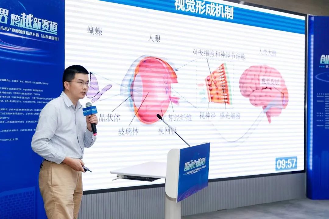 路演项目包括移动式磁共振成像系统、医疗快速诊断技术、微型BNCT治疗装置等。其中,中国科学院上海光学精密机械研究所何飞带来的“植入式视觉刺激芯片”令人印象深刻。据介绍,这是由一种柔软而坚韧的材料制备成的高密度微电极阵列,将其精确植入大脑的视觉神经系统,可以为先天和后天视障人士提供个性化解决方案。