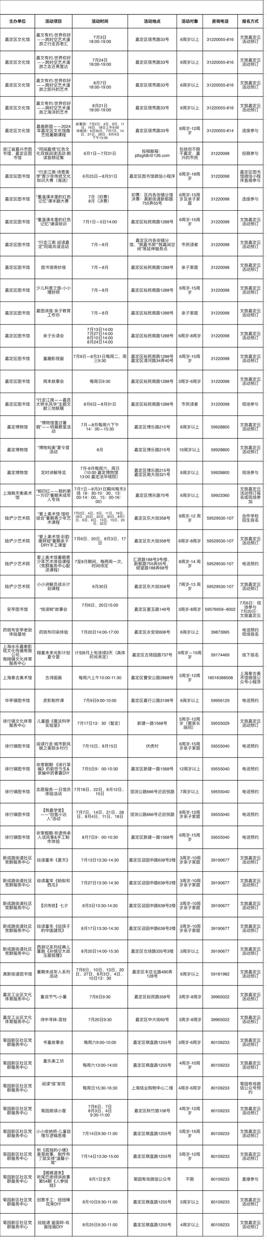 助力快乐暑假!嘉定区2024年文化寻宝活动菜单出炉