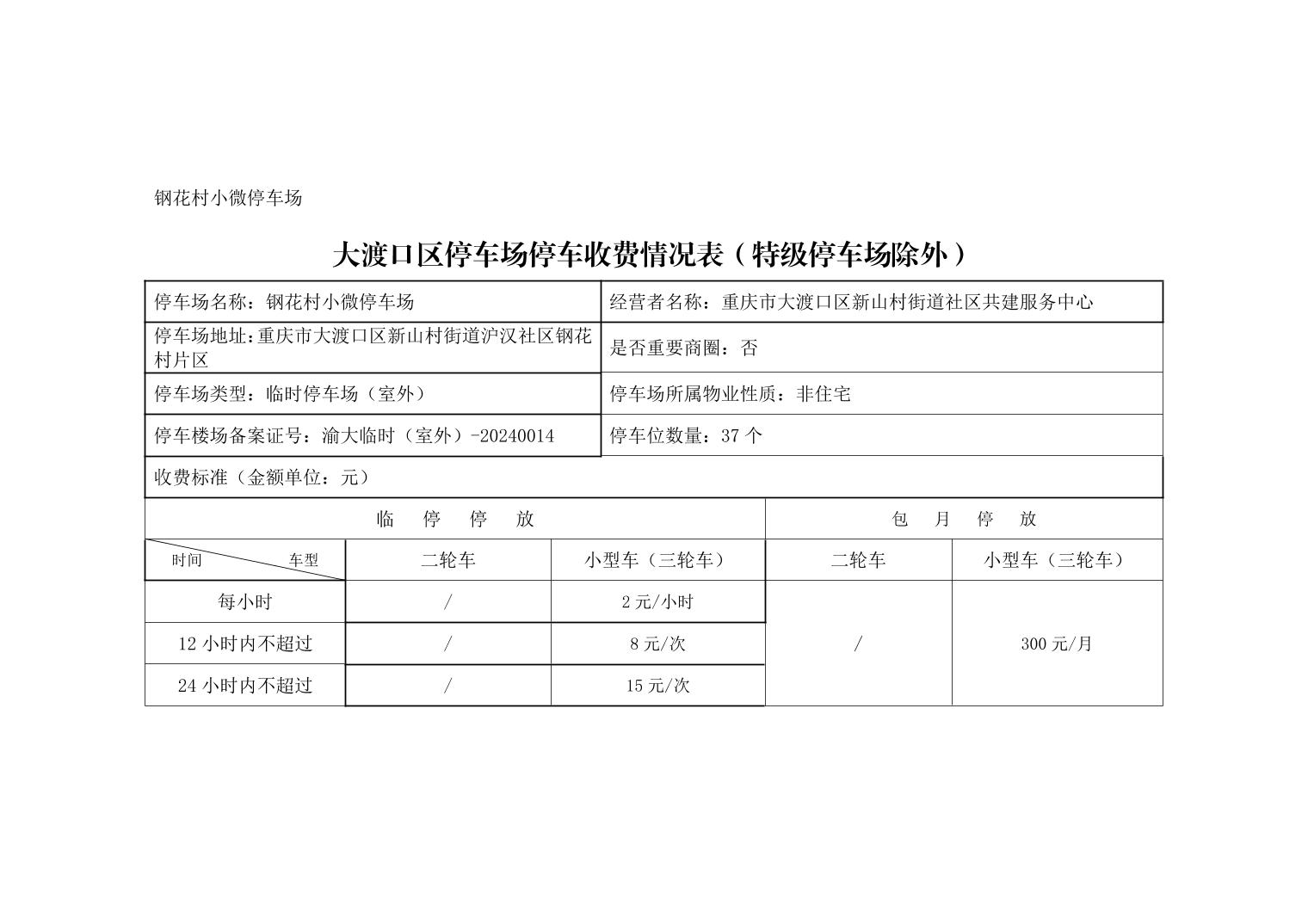 大渡口区停车场停车收费情况表(特级停车场除外)(2024.7.3)