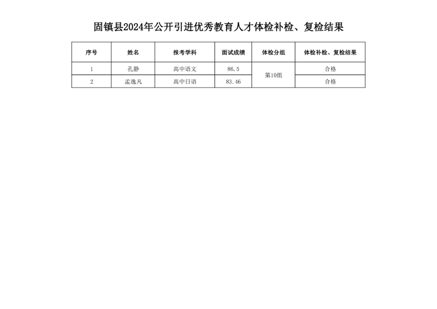 固镇县2024年公开引进优秀教育人才体检补检、复检结果公告