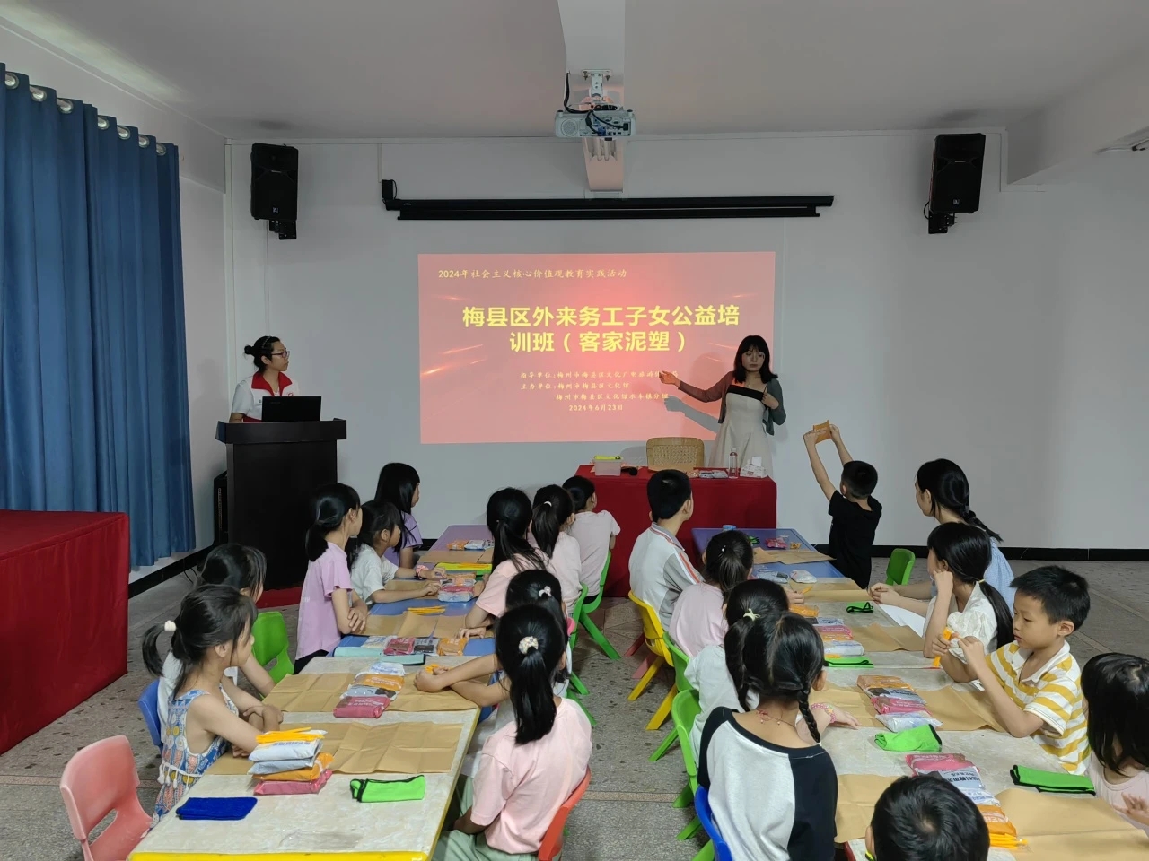 为着力培育和践行社会主义核心价值观,传承中国传统文化,加强对外来务工子女的关心与教育,由梅州市梅县区文化广电旅游体育局指导,梅县区文化馆主办的“社会主义核心价值观教育实践活动”梅县区外来务工子女公益培训(客家泥塑)在梅州市梅县区文化馆水车镇分馆开展。