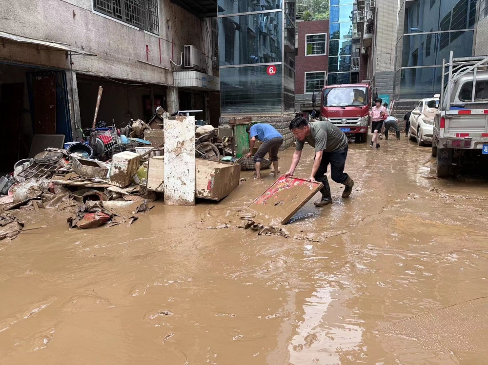 7月2日清晨,随着洪水逐渐退去,县农业农村局党组书记、局长曾要军迅速召集全体机关干部召开紧急会议,对后续救灾工作进行了周密部署。他强调,要立即着手清淤工作,确保道路畅通;同时,要密切关注受灾群众的生活状况,继续做好群众转移安置和风险隐患排查。在他的带领下,全局上下迅速行动,分别在碧潭大桥至浏家滩大桥西侧道路、浮桥街、优农小区、兴农小区、临江小区及县农业农村局机关宿舍等地,有序开展清淤、排水、群众转移及风险隐患排查工作,全力以赴恢复灾区正常生产生活秩序。