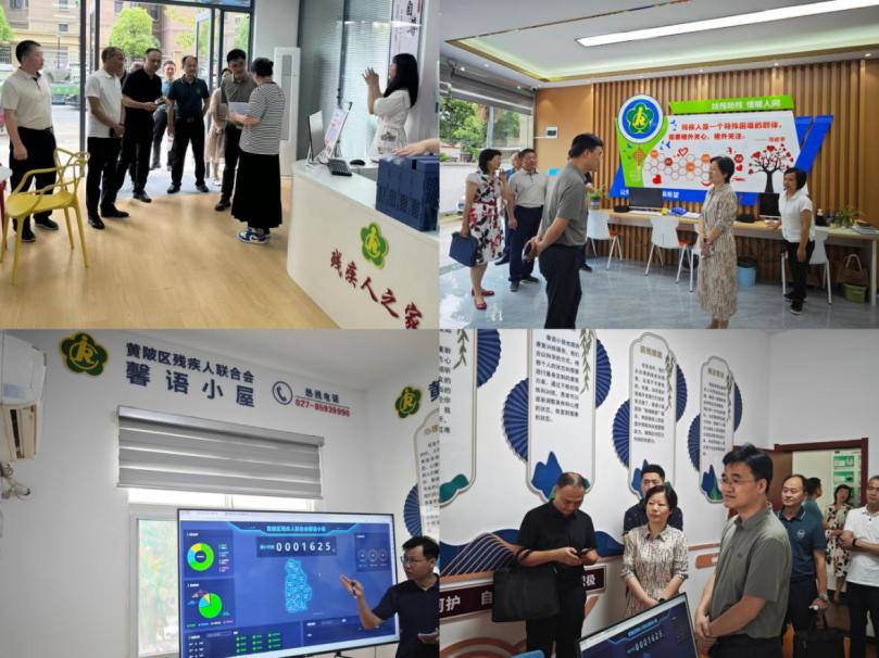 江夏区残联一行调研了前川街残疾人阳光驿站、残疾人之家、区残疾人辅助器具服务站、残疾人就业服务中心和馨语小屋等残疾人服务阵地,详细了解黄陂区残疾人服务设施建设、人员配置、机构运行等情况。