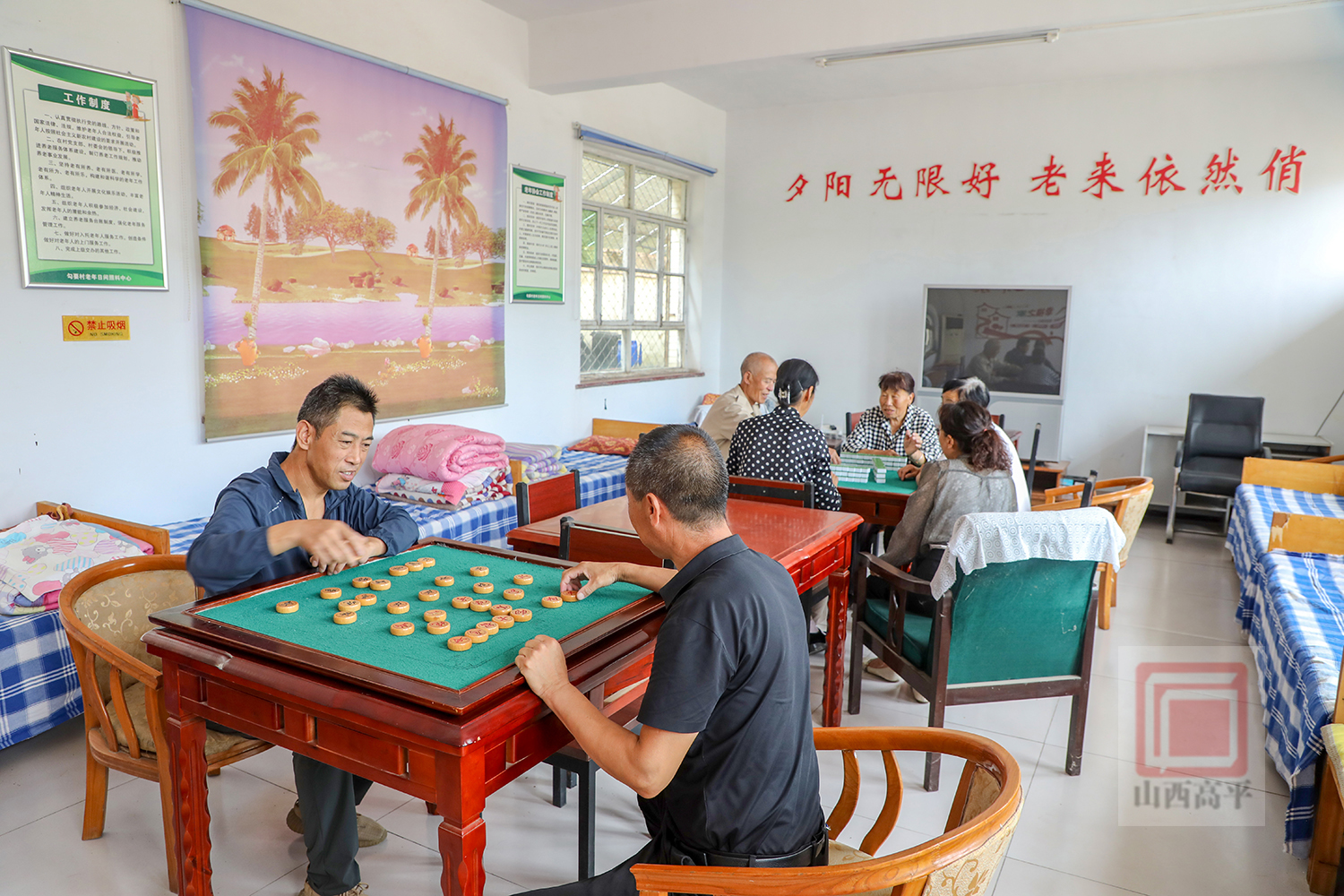 在米山镇勾要村老年日间照料中心,新改造的活动室环境温馨,配套齐全,吸引了不少老人来这里打牌、下棋。