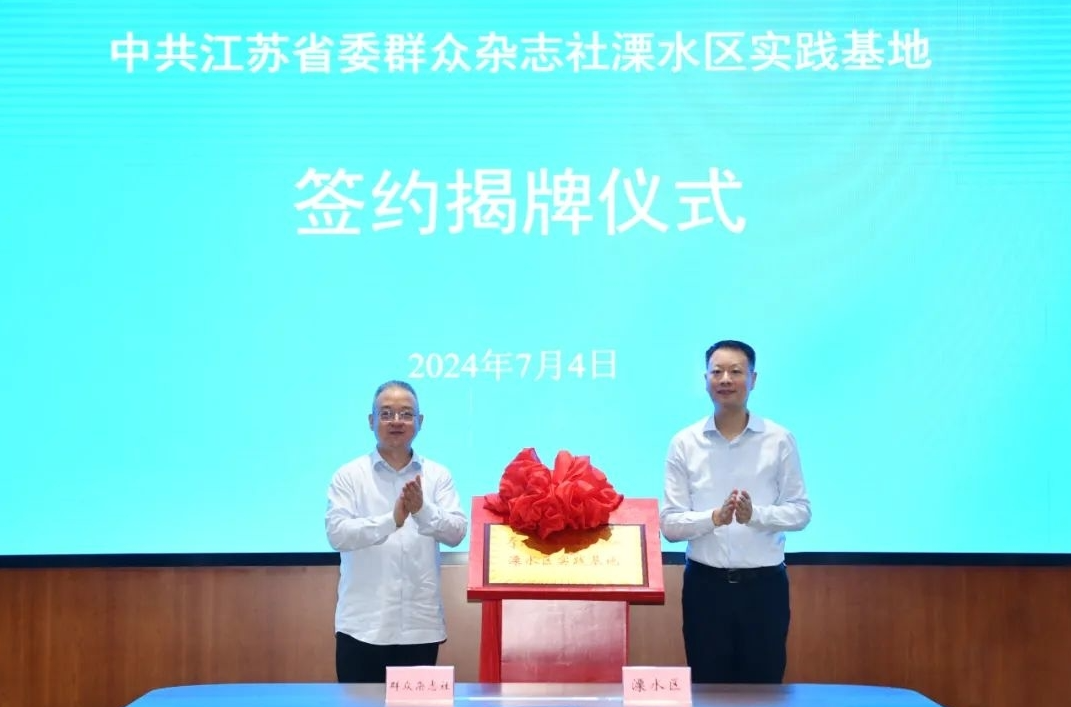 7月4日,中共江苏省委群众杂志社溧水区实践基地签约揭牌仪式在溧举行。群众杂志社总编辑周斌、区委书记张蕴出席并共同为实践基地揭牌。群众杂志社副总编辑李程骅,区长缪秀梅,区领导夏云、张德才等参加。