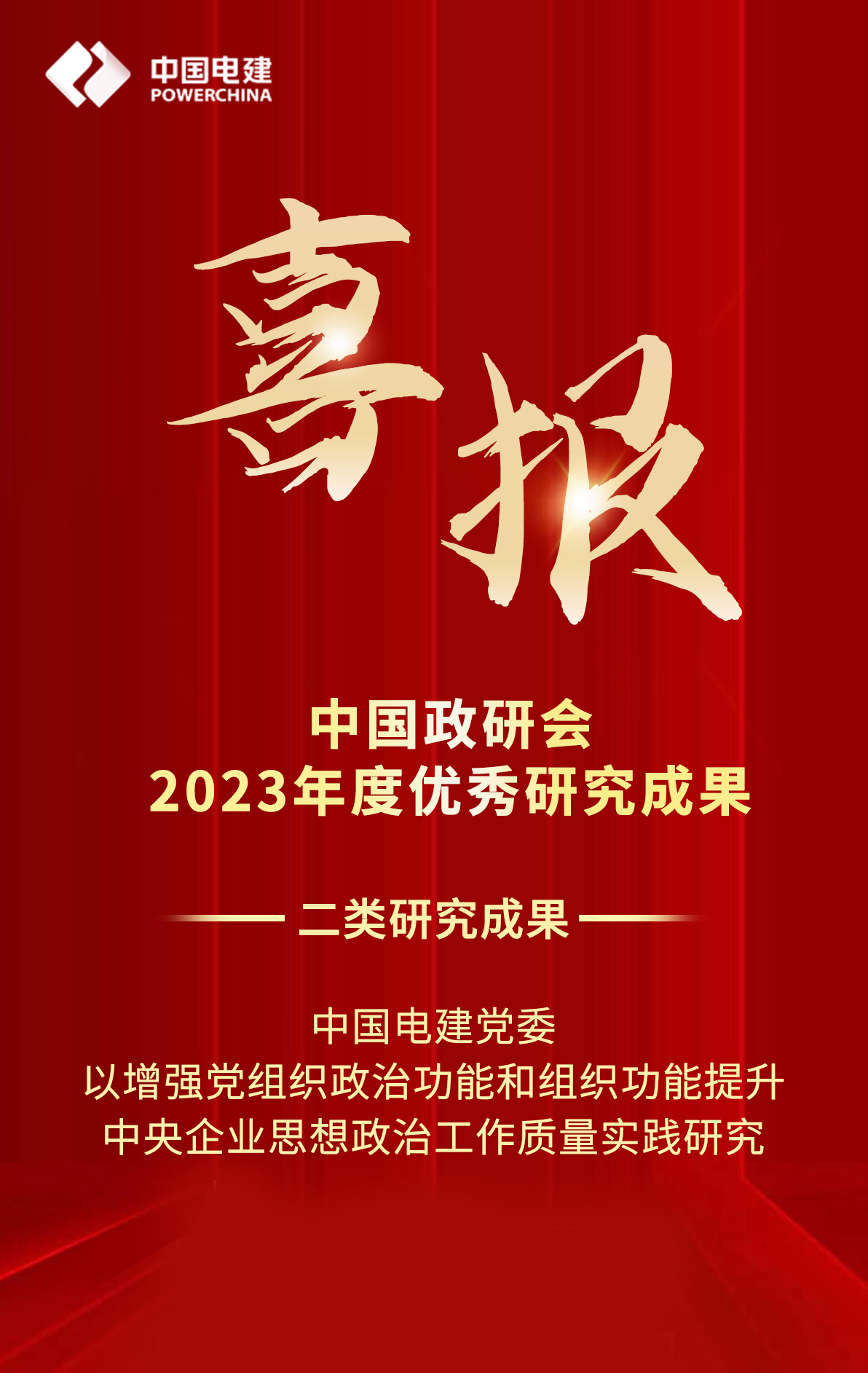 近日,中国思想政治工作研究会公布了2023年度优秀研究成果,公司党委《以增强党组织政治功能和组织功能提升中央企业思想政治工作质量实践研究》课题,经中国电力思想政治工作研究会推荐,荣获二类优秀研究成果。