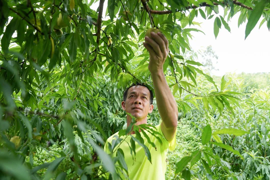 7月3日,记者走进位于江口乡六合村木堆屯的柳州“市外桃源”鹰嘴桃产业基地,映入眼帘的便是一片郁郁葱葱、硕果累累的丰收景象。一个个成熟诱人的鹰嘴桃点缀林间、挂满枝头,绿里透红、娇艳饱满、惹人喜爱。空气中弥漫着鹰嘴桃的香甜气息,让人垂涎欲滴。