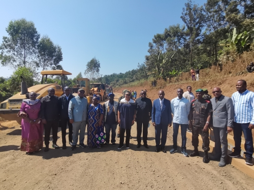 当地时间6月26日,刚果(金)总理朱迪丝·苏米努瓦·图卢卡一行到水电十四局承建的布卡武公路项目PK10-PK15段视察。刚果(金)南基武省各政府部门官员陪同。