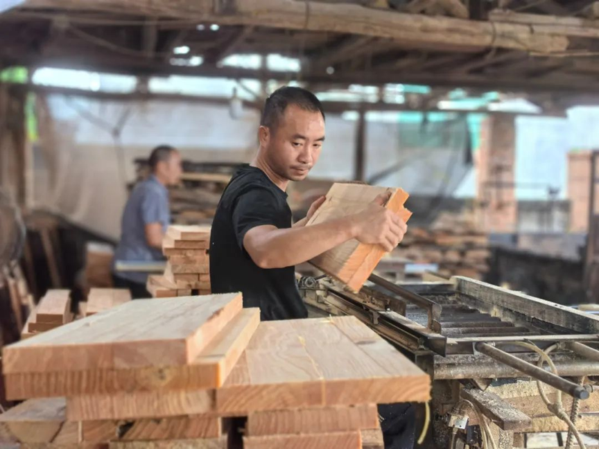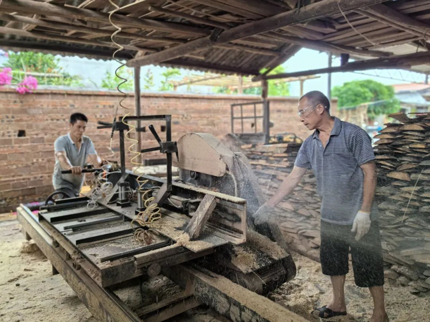 近日,记者来到黄冕镇黄冕村岭头屯的一家方格簇加工坊看到,这里的负责人廖诗缘正和工人们有条不紊地制作方格簇,锯木板、打薄分成条状、压实、组装,很快一个方格簇就制作完成了。廖诗缘说,方格簇是蚕吐丝结茧的用具,他们加工坊的制作规格为62公分×91公分,也可以根据客户的需求进行个性化定制,每个小方格深度3.2公分,厚度4毫米,比常规的更厚、更耐用。