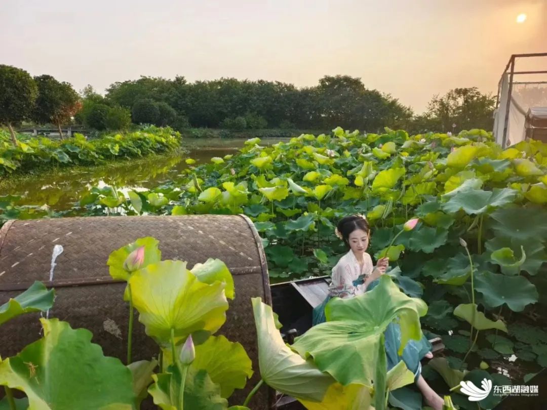柏泉街自勇园艺专业合作社设有赏荷专区。泛舟湖上,划入荷花深处,荷叶碧绿如玉,荷花娇艳欲滴。每一朵荷花,似乎都在诉说着夏日的故事。来这里的小姐姐,一身汉服装扮,你,心动了吗?