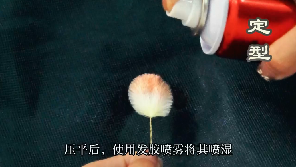 6.定型:压平后,使用发胶喷雾将其喷湿。