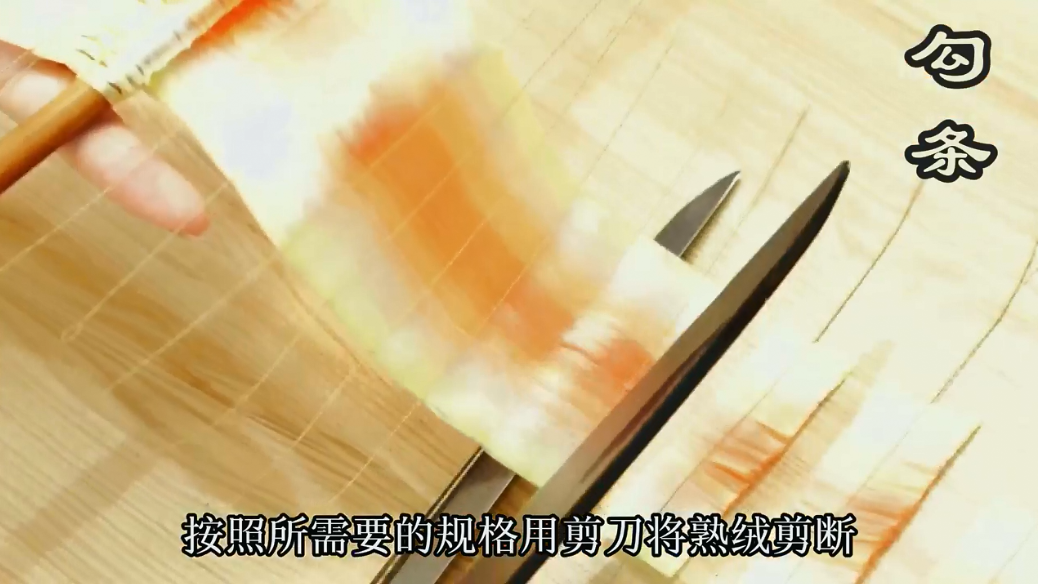 4.勾条:按照所需要的规格用剪刀将熟绒剪断。