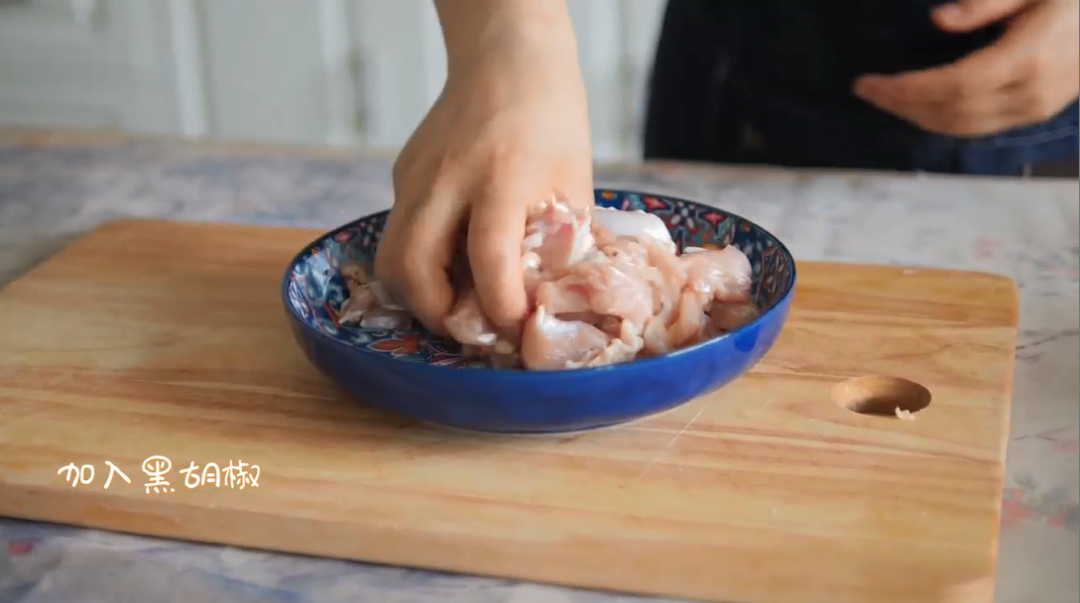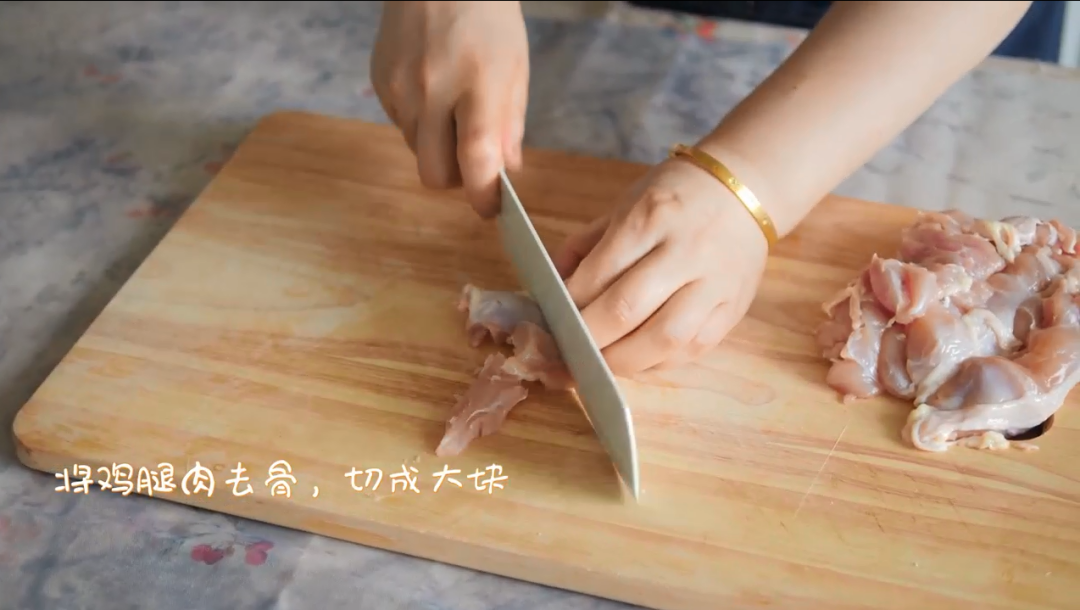 1.将鸡腿肉去骨,切成大块。