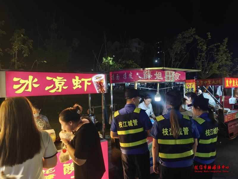 一个个设立有序、环境整洁的摊点,在便民利民中提升了市民的幸福指数。这背后,是枝江市城市管理执法局为了推动“地摊经济”良性健康发展而进行的精细化管理,他们在“放”与“管”之间实现柔性平衡。今年以来,市城市管理执法局组织专班人员多次实地踏勘和调研人流量、交通脉络、周边居住环境等多种因素,在城区合理设置夜市临时经营点7处,时令瓜果“潮汐摊位”22处、夏季限时摊位14处,合计提供摊位227个,经营涵盖小吃、瓜果、小商品、游乐等项目,吸引大批市民消费“打卡”。
