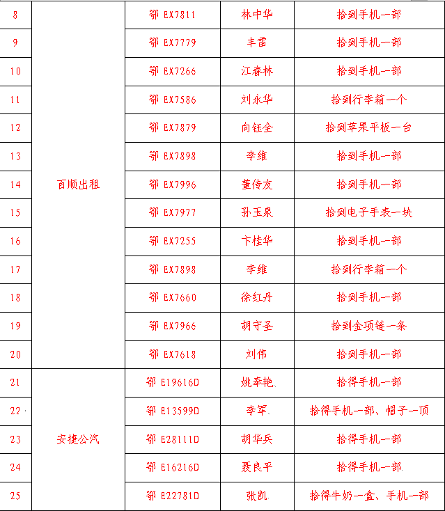 还有更多未上红榜的司机分别拾得