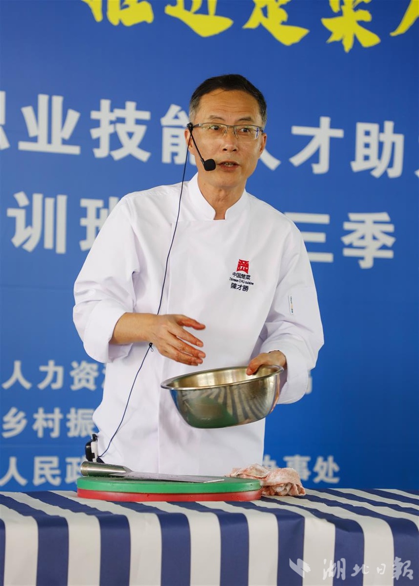 本次活动以“激发乡村人才活力 推进楚菜人才培养”为主题,邀请“中国烹饪大师”陈才胜等烹饪为区内58名农业户籍的厨哥嫂们免费开展培训,教授烹饪原料知识、烹调技艺、特色地方农家餐制作等多种烹饪知识。