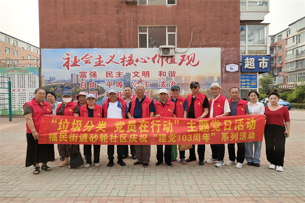 为庆祝中国共产党成立103周年,回顾党的光辉历程,进一步增强基层党组织的凝聚力和战斗力,激发党员知党、敬党、爱党、颂党的真情实感,福民街道砂轮社区第一、第二网格党支部开展庆祝“建党103周年”系列活动——“垃圾分类 党员在行动”主题党日活动。