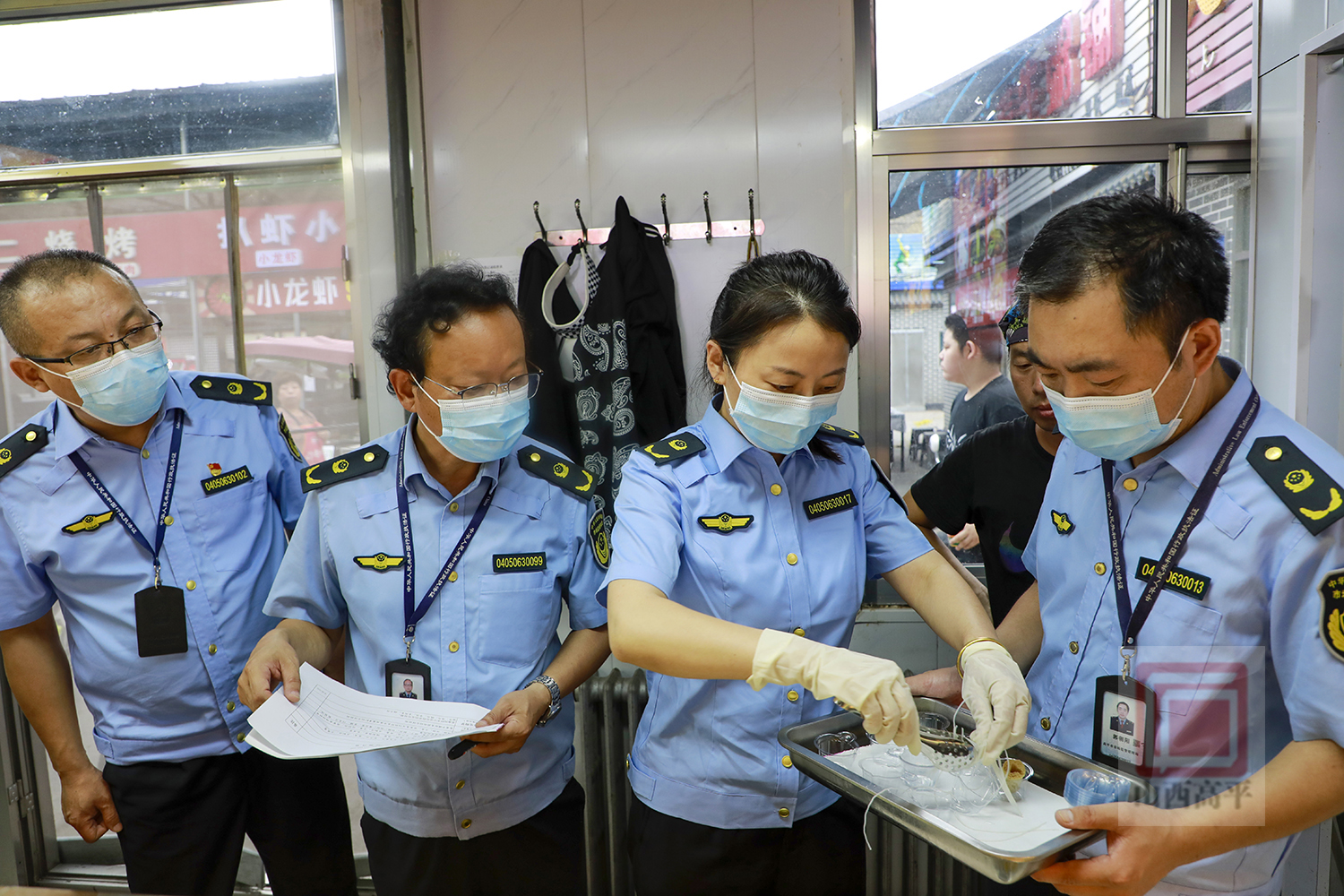 来到新时代小吃广场,执法人员在小吃广场设立了食品安全快速检测点,随机抽取摊点销售的豆皮、牛肉、粉丝等食材进行了现场检测,重点对农药残留、吊白块、亚硝酸盐等进行了检测,并现场出具了检测结果。除现场检测外,工作人员还抽取了小龙虾、大闸蟹等餐饮食品送至专业检测机构进行检测。