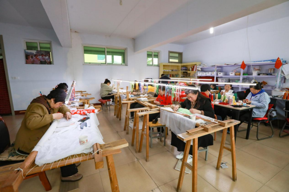 “守着家学到了一门手艺,还能有点收入,很不错。”凤林刺绣厂学员赵晋霞说。