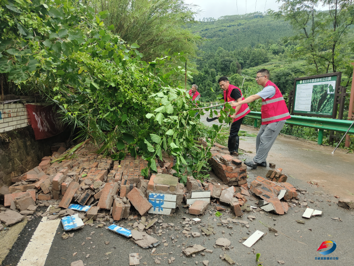 双龙镇公路山体滑坡,干部群众第一时间开展抢险疏通道路