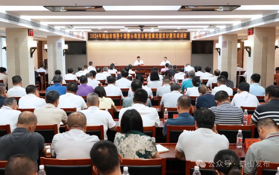 根据党中央关于开展党纪学习教育的部署要求和市委工作安排,7月10日,鹤山市召开领导干部警示教育会暨党章党规党纪教育培训班。市委书记刘志刚出席培训班并作讲话,强调要深入学习贯彻习近平总书记关于全面加强党的纪律建设的重要论述精神,认真学习《中国共产党纪律处分条例》,不断增强纪律意识,加强自我约束,提高免疫能力。市委副书记、市长张华景,市政协党组书记、主席陈文出席会议。