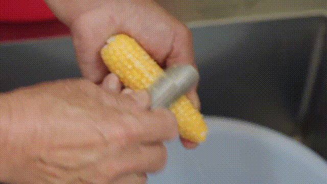 用刨果皮的刨子在刚去壳新鲜玉米上,顺次浅浅地刮去部分表皮层,是做冷粥番麦的关键一步。“刮好的玉米放到锅里煮,才会变稠,像粥一样,关火后加点糖味道会更好。”陈玉书一边搅动锅中玉米一边介绍,“等到玉米表面的颗粒都变软,露出里面的瓤,就可以关火了。”