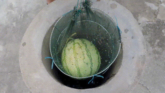微风轻拂,蝉鸣渐响。嘉定工业区白墙村村民陈玉书准备做个井水西瓜,邀请左邻右舍前来品尝。陈玉书把一早买好的西瓜放在网兜里,在收口处打上绳结固定,慢慢地将西瓜吊进井中。