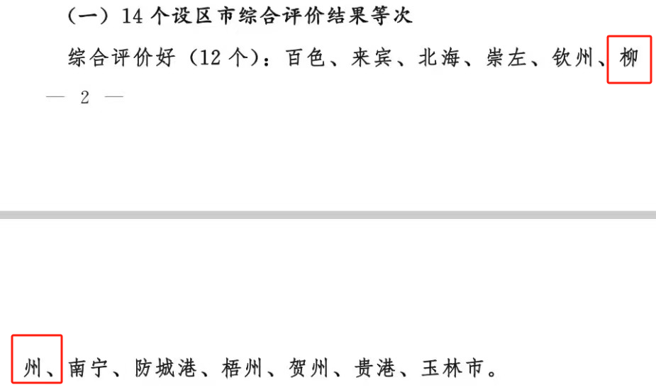 柳州市获得“综合评价好”等次