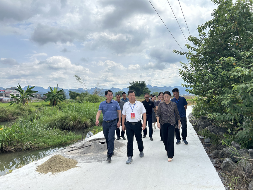 督导组先后到平山镇大阳村小淮海屯、石龙村三合屯、石干屯和大票屯,对平山镇大阳村小淮海屯甘蔗产业基地道路硬化的建议以及平山镇石龙村三合屯、石干屯、大票屯产业道路硬化的建议办理情况进行视察调研。督导组通过实地察看和听取各承办单位负责人现场介绍,并与建议领衔代表、当地群众进行交流,详细了解重点督办代表建议办理情况。