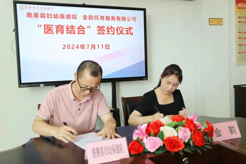为认真贯彻落实《广西促进3岁以下婴幼儿照护服务发展工作厅际联席会议办公室关于开展“托育服务攻坚提升年”活动的通知》文件要求,深化医育结合,7月11日,鹿寨县妇幼保健院与鹿寨县金韵托育服务有限公司、亿婴天使托育有限责任公司分别签署了“医育结合”服务合作协议。