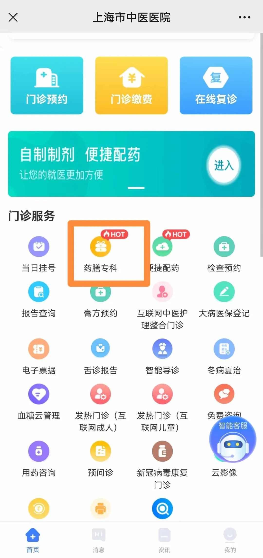 首先,微信搜索上海市中医医院互联网医院,进入主页找到药膳专科门诊。接着,选择就诊时段、填写个人信息,医生接诊后进入会话页面,医生根据你的具体情况开具药膳处方。最后,待药师完成审方便可线上支付、填写地址。接下来就是坐等快递寄送上门啦!