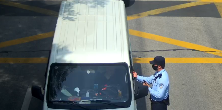 小货车停在路口一动不动,这时辅警冲了上去……