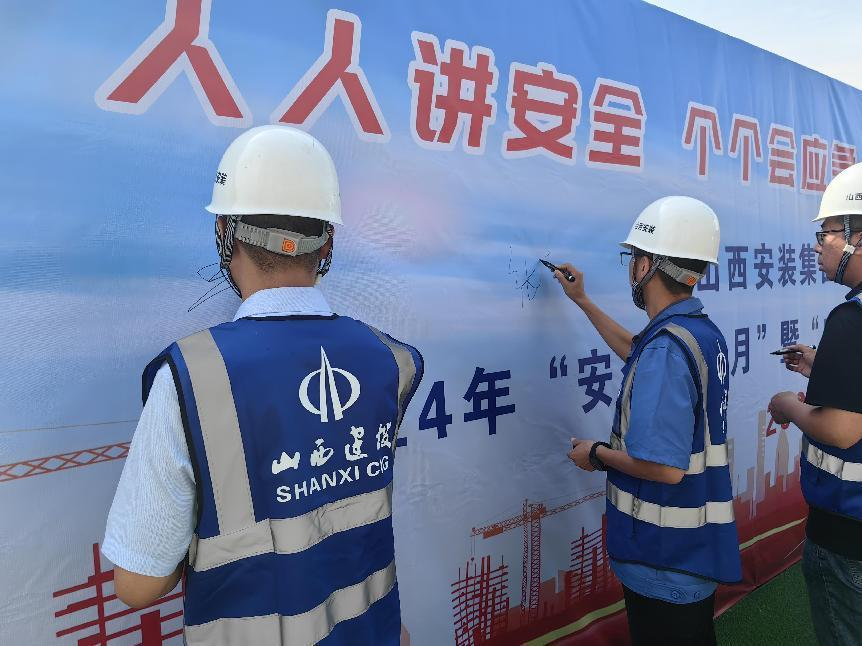 今年六月,是全国第23个安全月,华中工程公司于2024年6月6日在青山街项目举办了“安全月”启动仪式,旨在深化员工安全意识,强化安全管理,并推动安全生产工作迈上新台阶。现场精心策划的“安全月”专题展板、引人注目的宣传海报以及悬挂的醒目标语横幅,共同营造出浓厚的“安全生产月”氛围。
