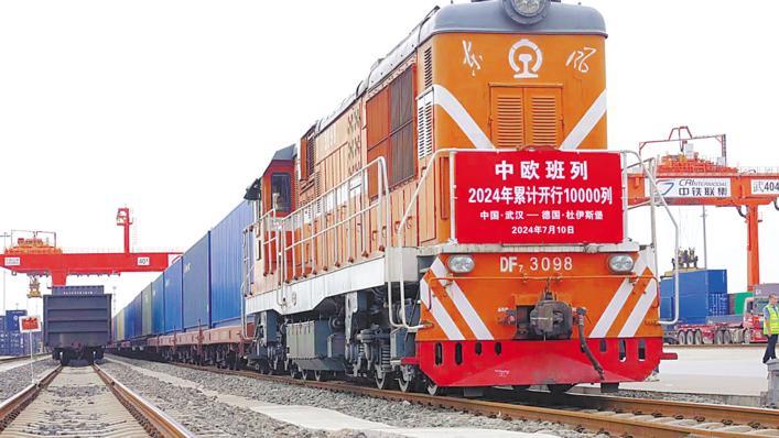 “今年第1万列中欧班列日前从武汉开出,较去年提前19天破万列。该趟列车预计十多天后抵达德国,运行时间较普通班列压缩约30%。发言人对此有何评论?”在7月16日举行的外交部例行记者会上,这条来自武汉的新闻备受关注。