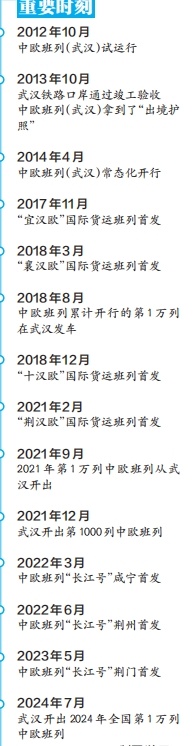 2012年,武汉成为全国第二个开通中欧班列的城市。自2014年中欧班列(武汉)实现常态化开行以来,至今累计开行总量位居全国第五。中欧班列(武汉)的常态化、规模化营运,为时效性较强、附加值较高的货物生产商和贸易商提供了新的选择。