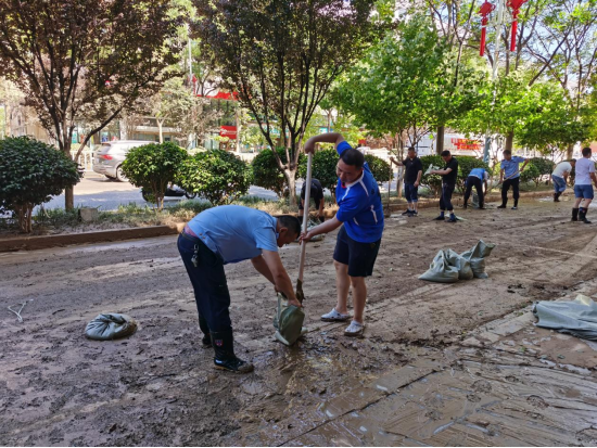 洪水退去的第一时间,县道路运输交通服务中心干部职工在主任赵曙光的带领下,大家拿起工具、扎起裤腿,齐心协力,对大厅、街道、停车场进行多次清理,重庆救援队连夜应援,协助排空地下室积水。经过连续多日的奋战,成功完成了该段责任区的清淤、冲洗、设备检修等工作。