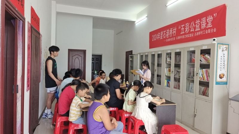 为了丰富村里孩子暑期文体活动,同时解决家长工作与家庭之间的时间冲突,石港桥村在7月初开设了“五彩公益课堂”,为孩子们打造出一个安全舒适的学习、娱乐环境,并招募暑期大学生参与管理,开班以来广受家长和孩子们的欢迎,同时也吸引了乡贤们的关注。