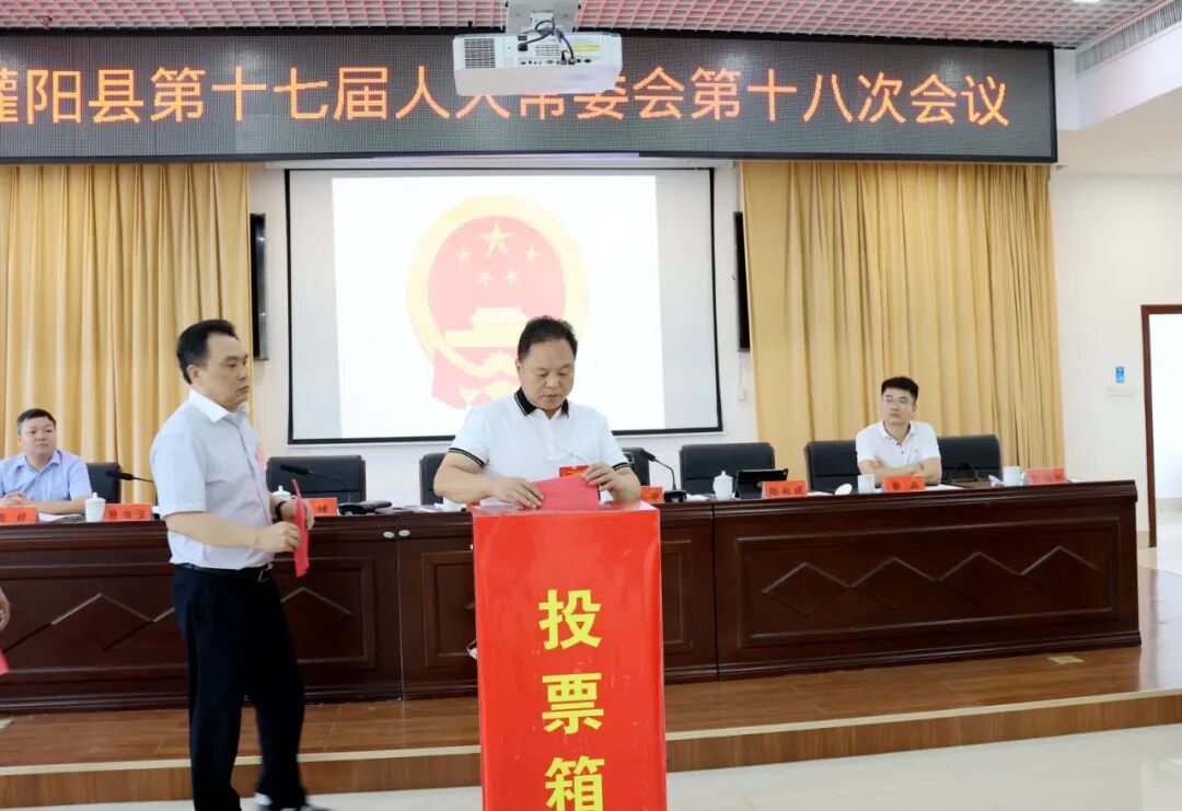 会议审议并表决通过了有关人事任免事项,任命陆进发同志为灌阳县人大常委会代表工作委员会主任;文珲同志为灌阳县人大常委会教科文卫旅游与民族工作委员会主任;唐冬梅同志为灌阳县人大常委会农业农村与城建环资工作委员会主任;戴青云同志为灌阳县人大常委会预算工作委员会主任;范见远同志为灌阳县人大常委会法制工作委员会主任;雷唤雨同志为灌阳县人大常委会代表工作委员会副主任;曾扬帆同志为灌阳县人大常委会教科文卫旅游与民族工作委员会副主任、灌阳县人大常委会法制工作委员会副主任;卿婷同志为灌阳县人大常委会预算工作委员会副主任;王琦同志为灌阳县统计局局长;卿熙念同志为灌阳县林业局局长;文衍明同志为灌阳县交通运输局局长;王波进同志为灌阳县财政局局长;周兴同志为灌阳县信访局局长;蒋佳云同志为灌阳县应急管理局局长;邹状初同志为灌阳县科技工信和商贸局局长。唐国喜同志为灌阳县人民法院民事审判庭庭长;蒋亚玲同志为灌阳县人民法院立案庭(诉讼服务中心)庭长。