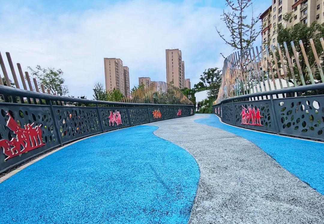 园内铺以环形步道,修建了小广场供市民休闲晨练,在人、景、物和谐相处的生态环境中,提升城市街区景观品质。园中石拱桥宛如一条优雅的弧线,矗立在绿树和湖泊之间,构成了一幅宁静而唯美的画面。沿园路栽植樱花、碧桃、紫荆、水杉等特色植物,营造出“春花、夏荫、秋实、冬绿”四季分明的景观效果,是一个集游憩、健身、休闲于一体的社区公园。