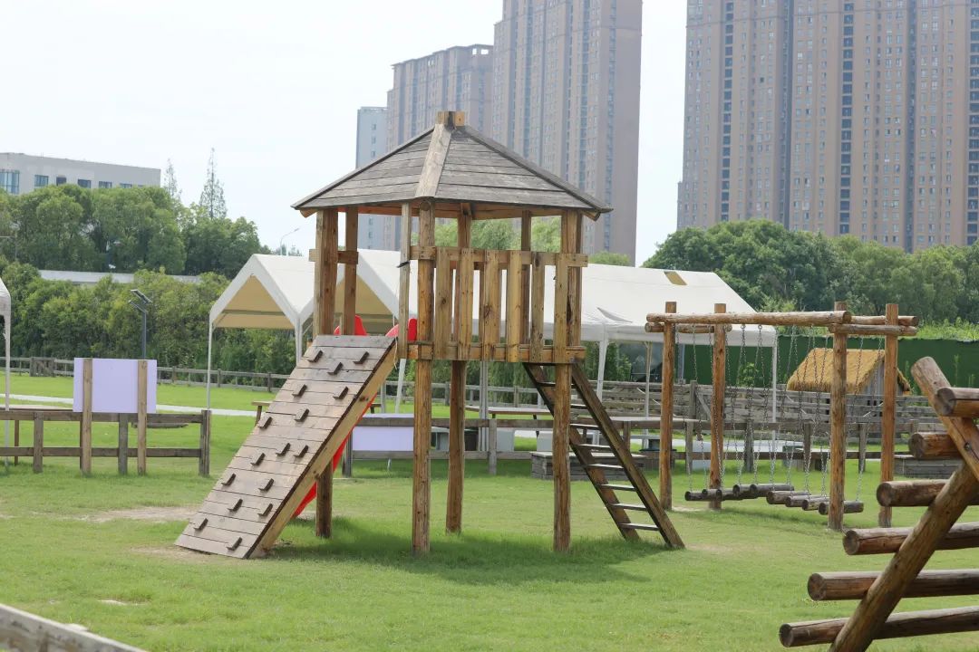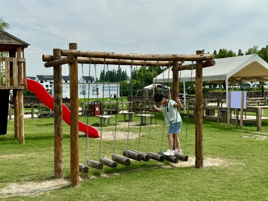 儿童游乐区设置滑滑梯、跷跷板、独木桥等项目